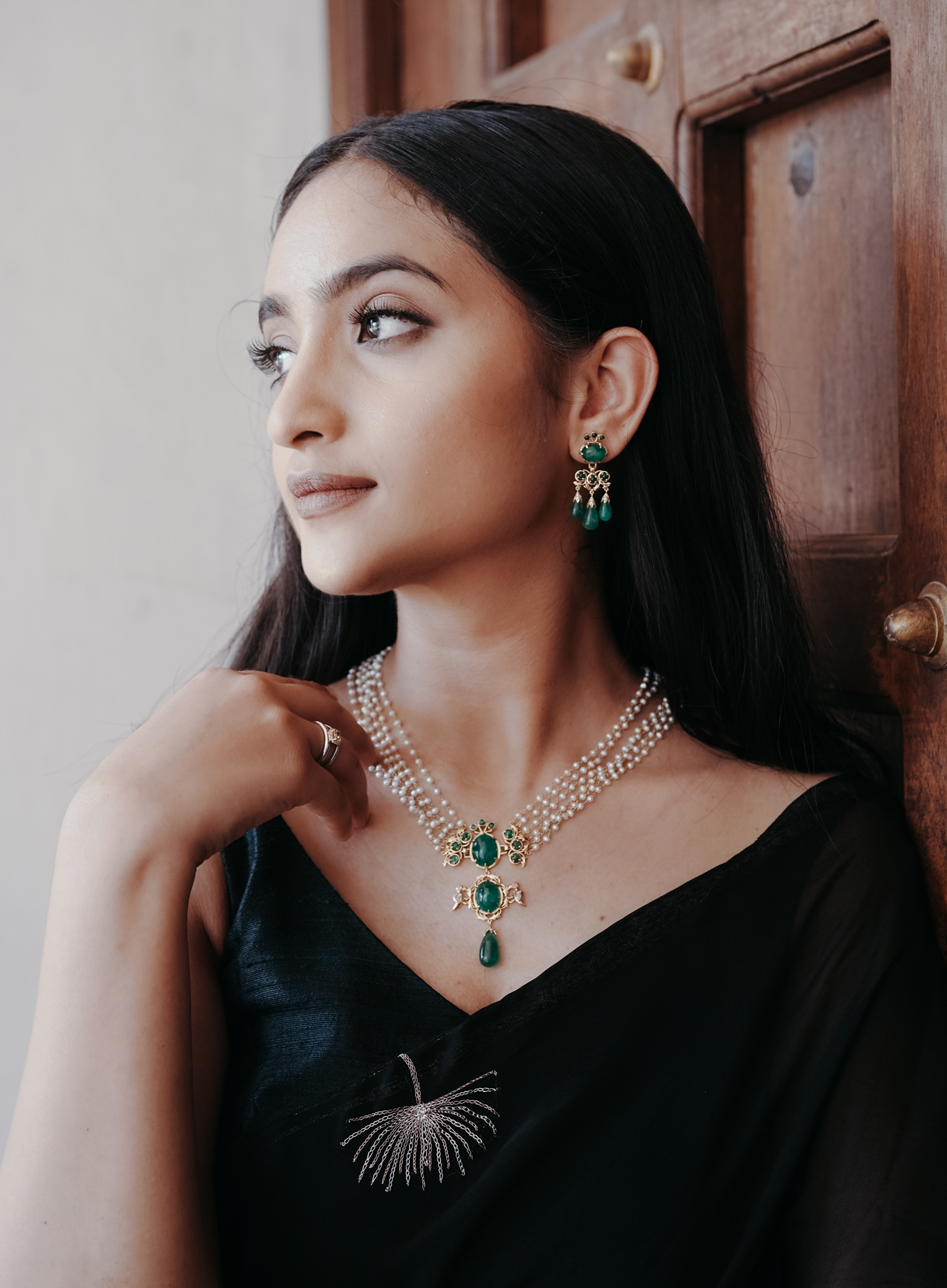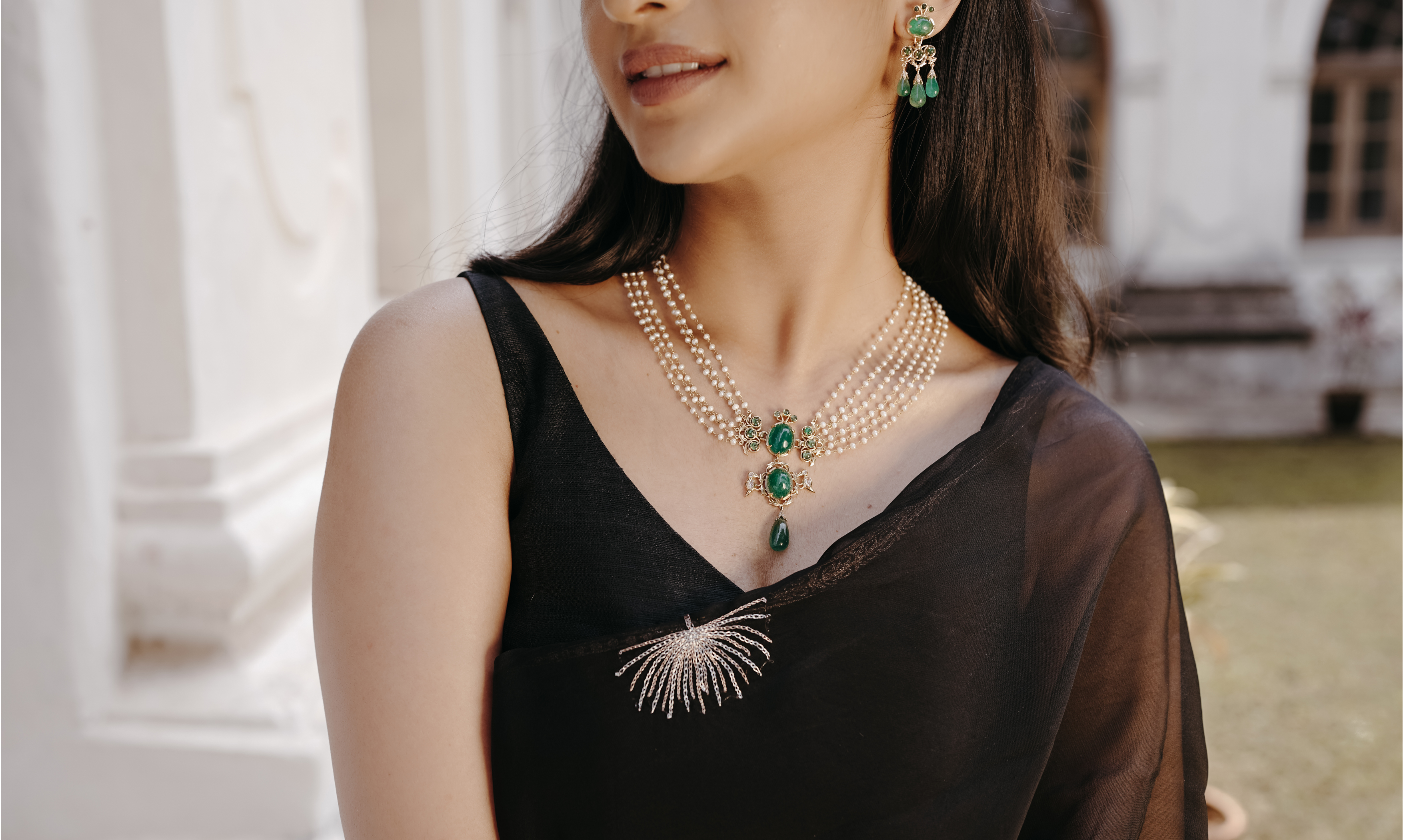 The pearls to bring the Victorian spirit. They are then tied together in gold to light up the ethnic drama.
