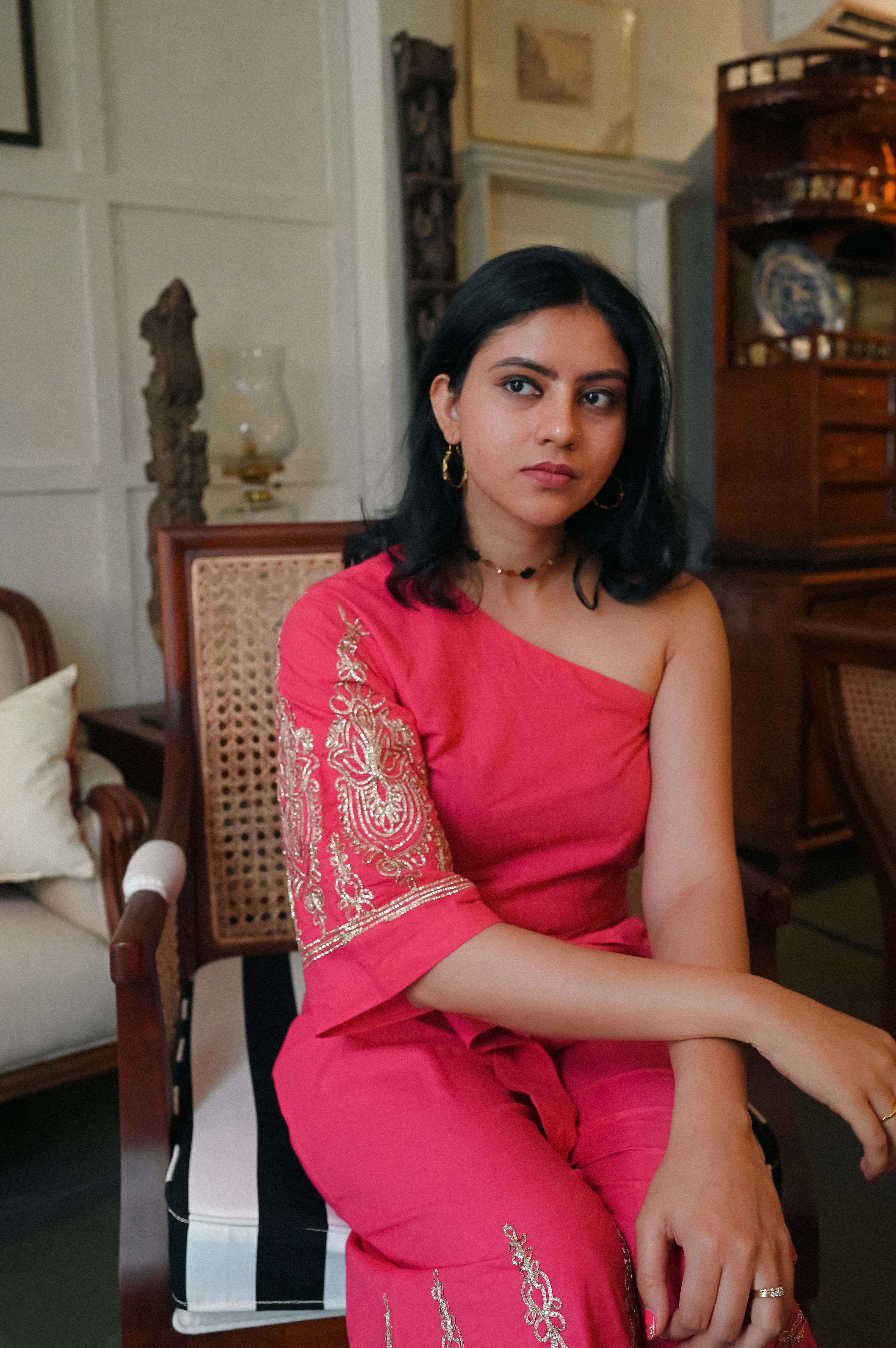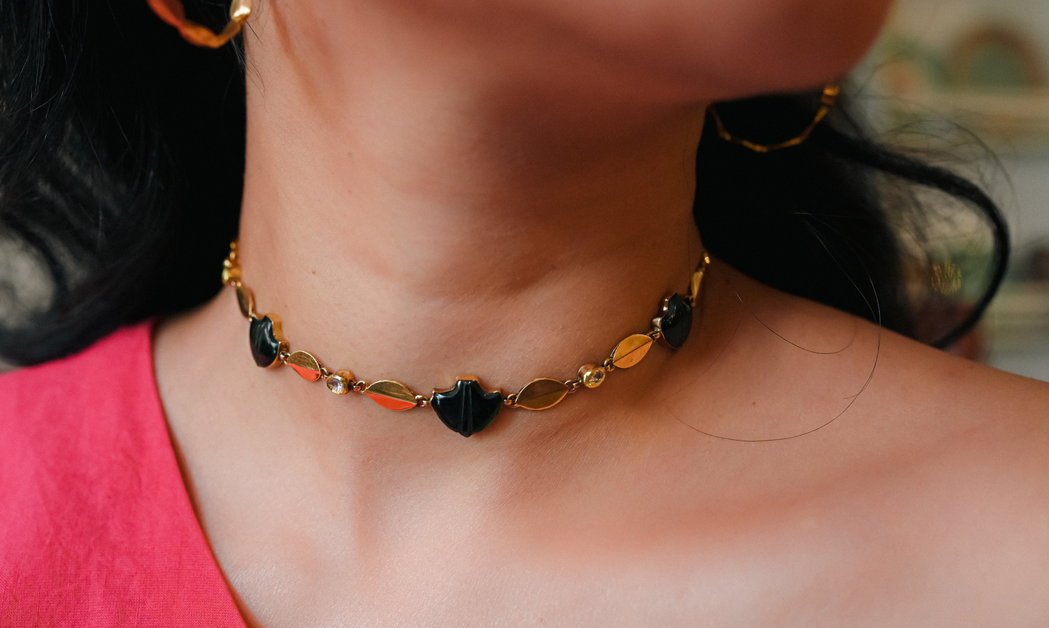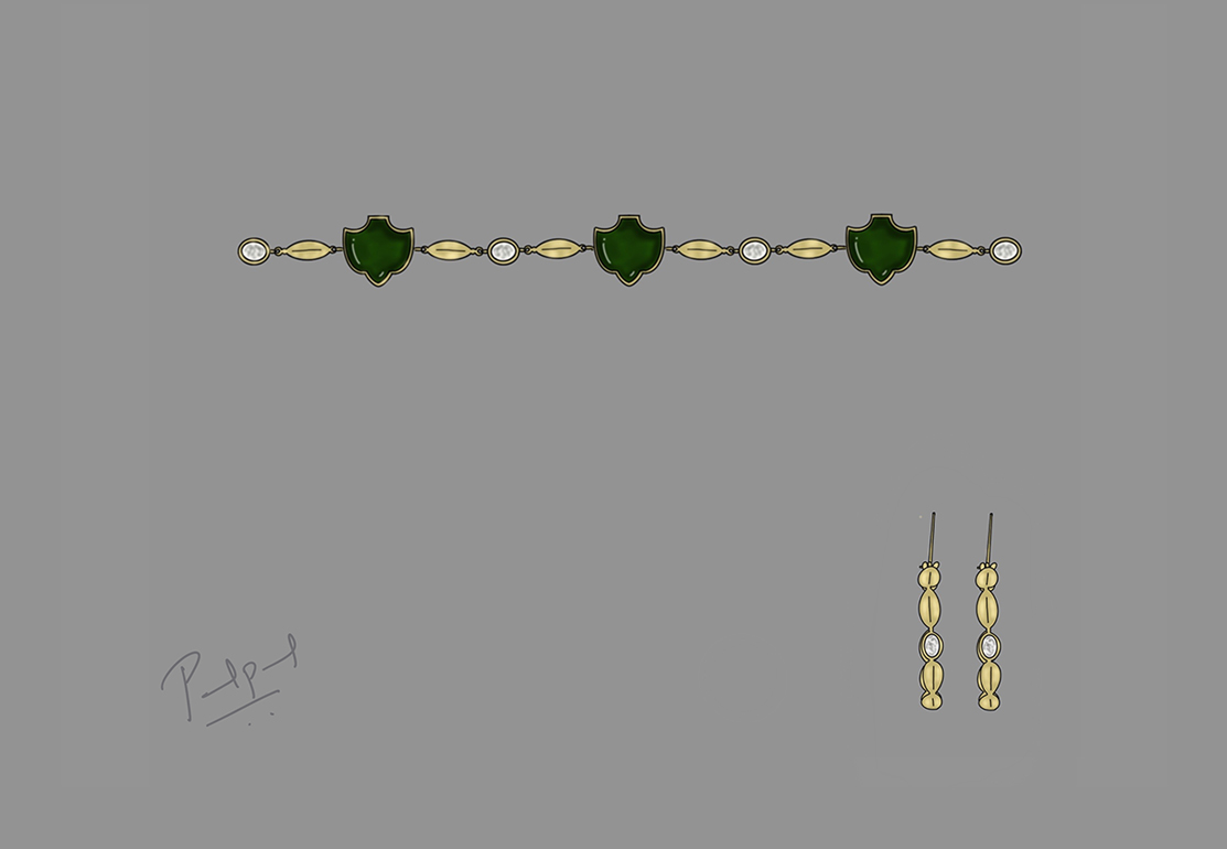 A minimal choker with craftmanship of Jadau setting while rooted in Kerala. Modern hoops with tradition being the star. Sparkle of Polki diamonds bringing the necklace to shine.
